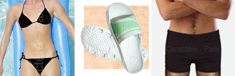 Maillot de bain non jetable premier prix et de dépannage, tong, claquette pour le bord des picines.