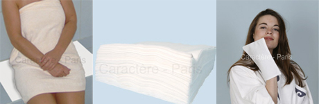 Peignoir, chaussons, draps de massage, serviette, protège matelas, slips, string.... Caractère est le spécialiste dans les SPA du linge jetable depuis 1993